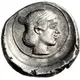 | Reverse description | Head of the nymph Aigeste to right, her hair bound with a taenia. All within a linear circular borde |