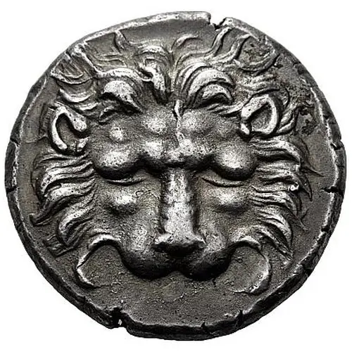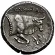 | Descrição do reverso | Forepart of an ox to right, with a dotted truncation and an olive branch to right |