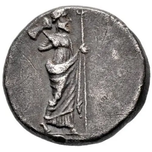 | Opis awersu | Zeus Labraundos walking right, wearing chiton and himation; double axe on right shoulder, and spear in left hand. |