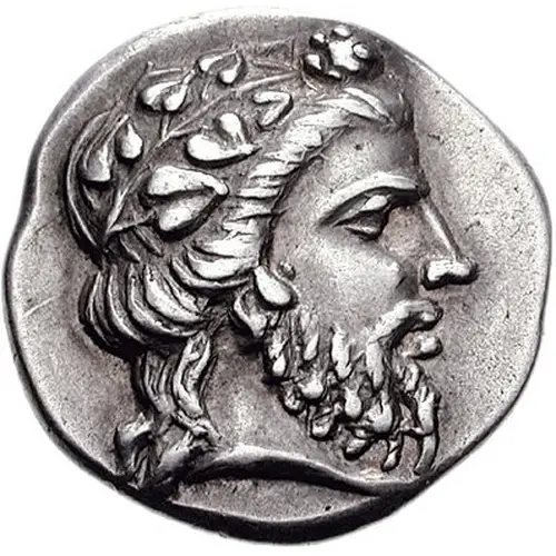 | Beschrijving keerzijde | Garlanded crater, with the name of the city above it and he name of the magistrate on the left and a filleted thyrsos to the right |