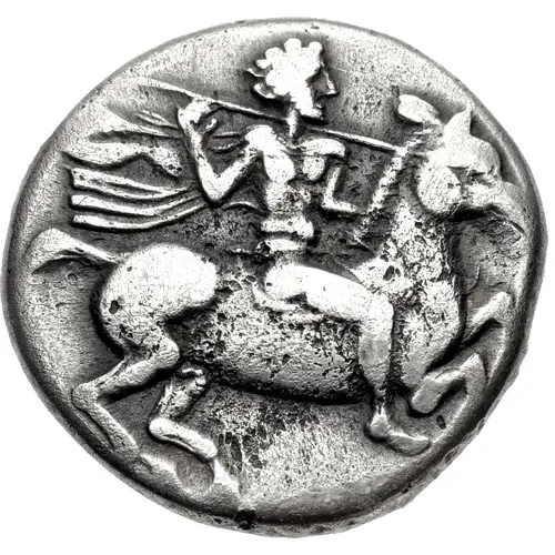 | Popis líce | Horseman riding right, preparing to throw spear. |