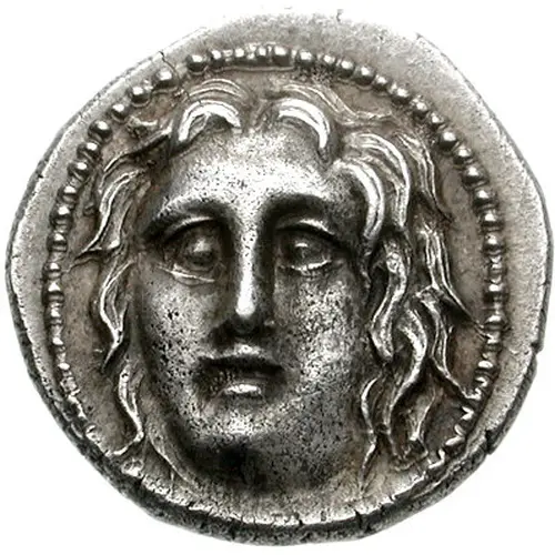 | Popis líce | Head of Helios facing slightly left and all in a beaded ring |