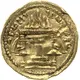 | Reverse description | A fire-altar (atasdan) in the form of column with a capitellum and base consisting of some plates. Under the capitellum there is a tongue of flame. The capitellum is supported by stands in the form of `lion paws` resting upon censers. The stands are decorated with bows. There is a pointed rim around the picture. Pahlavi legend |