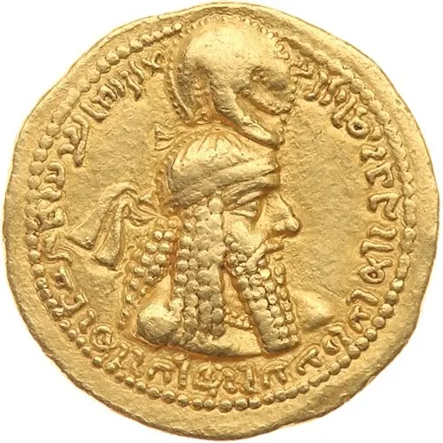 | Obverse description | A portrait of Ardashir I facing right. His crown takes the form of a close-fitting headdress crowned by globe. The headdress has a linear ornament. There are two small ribbons between the crown`globe and the close-fitting headdrees. There is no baslyk. There is a beaded rim around the picture. Pahlavi legend |