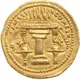 | Reverse description | A fire-altar (atasdan) in the form of column with a capitellum and base consisting of some plates. Under the capitellum there is a tongue of flame. The capitellum is supported by stands in the form of `lion paws` resting upon censers. The stands are decorated with bows. There is a pointed rim around the picture. Pahlavi legend |