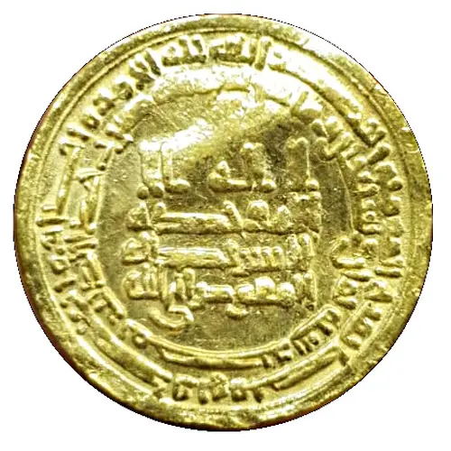 | Obverse lettering | Obverse center: لا إله إلا الله وحده لا شريك له المفوض إلى الله Obverse inner margin: بسم الله ضرب هذا الدينار بمصر سنة اثنين وسبعين ومائتين Obverse outer margin: لله الأمر من قبل ومن بعد ويومئذ يفرح المؤمنون بنصر الله (Translation: Obverse center: `There is no god but God alone; He has no partner. [The heir-apparent] al-Mufawwad ila-Allah.` Obverse inner margin: `In the name of God, this dinar was struck in Misr the year two hundred and seventy-eight.` Obverse outer margin: `To God belongs the command [of all things] before and after. And that day the believers will rejoice in the help of God (Qur`an 30:4-5).`) |