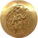 | Obverse description | King standing left making offering at a fire altar, wearing two-horned headdress with artichoke finial, and holding a trident |