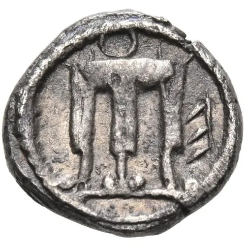 | Reverse description | Owl with folded wings standing to left, head facing front. |