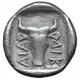 | 裏面の説明 | Bull`s head facing within incuse square, ethnic at sides. |