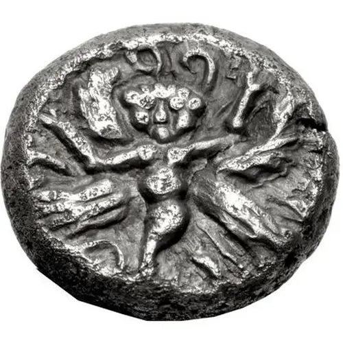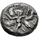 | Obverse description | Winged figure advancing right, head facing, raising both arms; volutes above and below. |