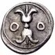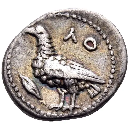 | Obverse description | Eagle with closed wings standing to left; in the field to left, barley grain; border of dots. |