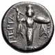 | Reverse description | Archaistic Palladion: statue of Pallas Athena standing facing, holding spear and shield. Inscription on the left field |