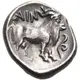 | Reverse description | Goat standing to right; to right, vine tendril; all within shallow incuse. |