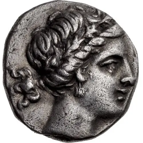 | Description de l’avers | Wreathed head of Kore Soteira right |