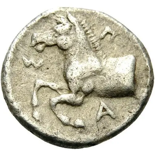 | Descrizione del dritto | Forepart of a horse to left |