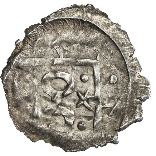 | Obverse description | In a square inscribed in a circle, Mengu-Timur`s tamga (a two-pronged tamga with a round head and a crossbar on the left). Around the tamga and outside the square, four 6-ray stars |