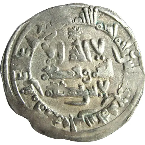 | Obverse lettering | لا الـه لا الله وحــــده لا شريك له بسم الله ضرب هذا الدرهم بمدينة فاس سنة تسع وثمانون وثلث مئة (Translation: There is no God God alone He Has no partner In the name of God, this dirham was struck in Madinat Fas in the year three hundred and eighty nine) |