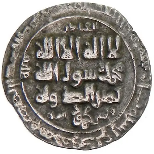 (Translation: The Invisible is One; Muhammad is the manifestation; Mahmud the king This tanka struck at Mahmudpur in the Arabic year 418) |