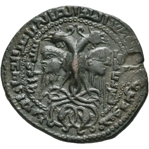 | Obverse description | Two-headed eagle standing on ornamented pedestal with wings spread in the shape of two male and bearded heads facing outward; to left and right, name of the mint and date in Kufic. |