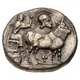 | Obverse description | Male figure driving ox cart to right; above, crested Corinthian helmet to right and below, flower. |