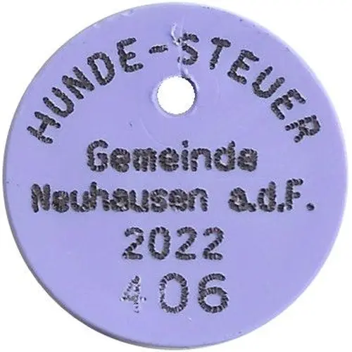 | Obverse description | HUNDE-STEUER Gemeinde Neuhausen a.d.F. 2022 (Steuernummer) |