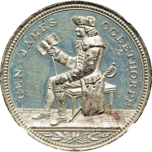 | Obverse lettering | around Gen. James Oglethorpe; beaded border. |