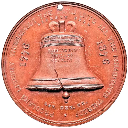| Obverse lettering | Lev XXVVX proclaim liber / in Philada by order of the / Pass and Stow, Philada / MDCCLIII; to l. in field 1776; to r. 1876; above Liberty Bell; below Lev. XXV VX.; around Proclaim liberty throughout the land unto all the inhabitants thereof; 6-pointed star between thereof and proclaim. |