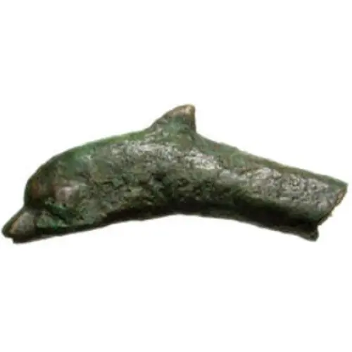 | توضیحات پشت سکه | Dolphin with dorsal fin and initials |