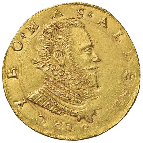 | Beschrijving keerzijde | Circular legend surrounded by stonework, Cybo`s ornate and crowned coat of arms surmounted by a two-headed eagle. |