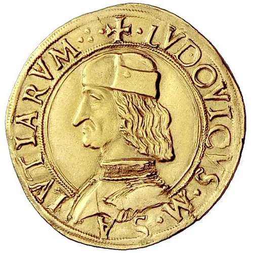 | Descripción del anverso | Cuirassed bust of Ludovico, wearing a hat and facing left. |