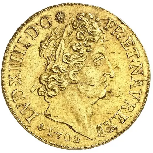 | Obverse lettering | LVD XIIII D G FRET NAV REX 1702 |