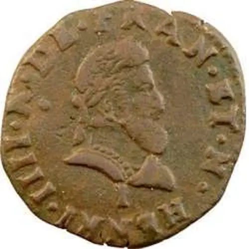 | توضیحات پشت سکه | Beginning of legend at 12 o`clock, 13 mm circle or not circled. Three lilies 2 and 1. Wheel = Mm François DUBOIS (1591-1597) Variety: On 1593 coins, the obverse legend begins at 5 o`clock. |