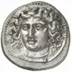 | 正面描述 | Head of the nymph Larissa facing, turned slightly to left, wearing ampyx, triple-pendant earring and necklace |
