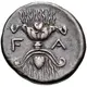 | Reverse description | Thunderbolt, with flames and pomegranate above and volutes and pinecone below. F-A across field |