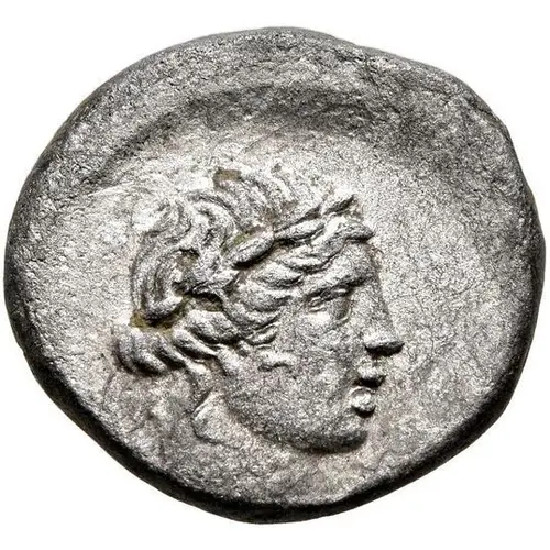 Obverse description Laureate head of Apollo to right.