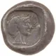Artistry: The engraver of this piece remains anonymous, characteristic of Archaic Greek numismatics. The coin exemplifies the robust Archaic style, known for its powerful symbolism and direct representation. The obverse typically features a finely detailed lion's head, often roaring, symbolizing strength and civic pride. The reverse frequently depicts the head of Aphrodite, the city's patron deity, rendered with archaic simplicity yet expressive features, reflecting Knidos's religious devotion and artistic skill through its iconic design.