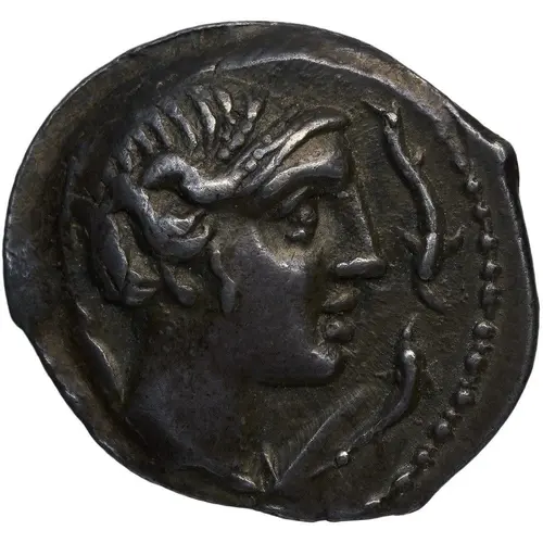 | Description de l’avers | Head of Diana right, quiver on back and two dolphins to right. |