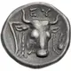 | Reverse description | Bull`s head right; kithara/lyre to right. |