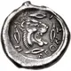 | Reverse description | Head of roaring lion right; four barley grains around. |