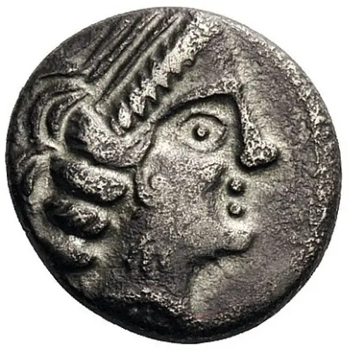 | Obverse description | Wreathed head of Artemis to right, her hair in rolls and with a very large frontal eye. |