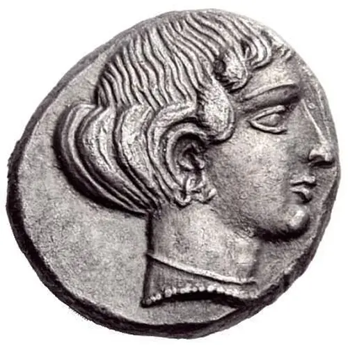 | Description de l’avers | Head of nymph facing right, hair rolled behind and wearing ear-ring. |