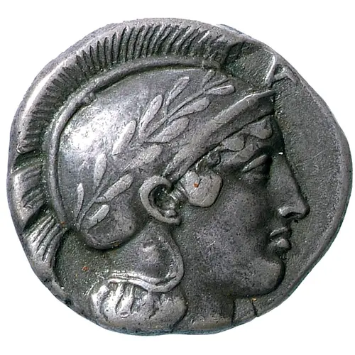 | 表面の説明 | Head of Athena to right, wearing crested and laureate Attic helmet. |