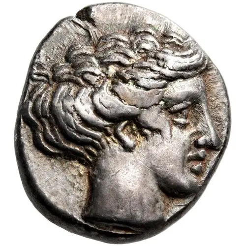| Obverse description | Head of the nymph Euboia to right, her hair in a roll. |