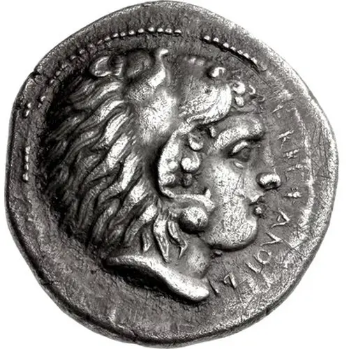 | Ön yüz açıklaması | Head of Herakles facing right, wearing lion skin and the name of the city to the right and below |
