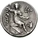| Reverse description | Aitolos seated right on pile of shields, holding spear and sheathed sword. LΥ monogram above, trophy to right. |