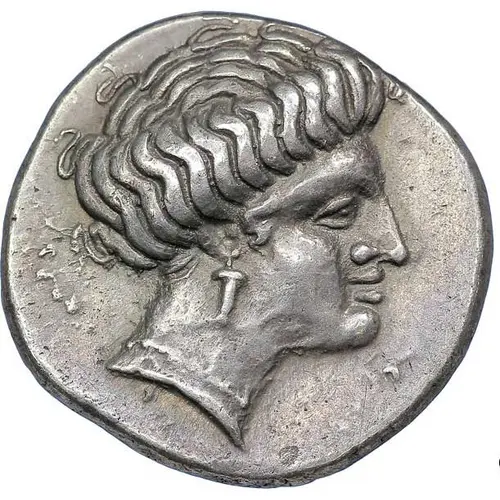| Opis awersu | Head of Hera (?) right, hair rolled behind |