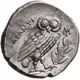 | Aversbeschreibung | Head of Athena to left, wearing crested Attic helmet with Skylla on the bowl, pendant earring and pearl necklace. Behind neck, monogram of ΑΡ |