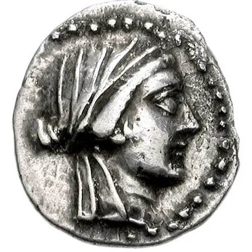| توضیحات روی سکه | Veiled head of Artemis Kindyas facing right |
