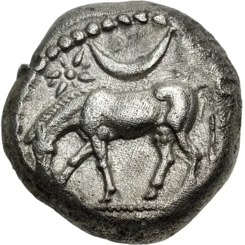 | توضیحات روی سکه | Horse grazing left; star and crescent above. |