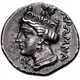 | Reverse description | Head of Hera left, wearing ornate stephanos, triple-pendant earring, and pearl necklace; leaf above, KP monogram below chin, KPΩMNA to right. |